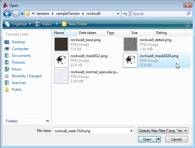 Notice that the following example Opacity Map resembles the original heightmap.
