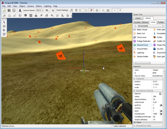 The GroundCover object can add an immense amount of ambience to your level. It is one of the most powerful and flexible Torque 3D objects, so you should definitely take the time to continue experimenting with it. Try different types of settings, art, and level arrangements.