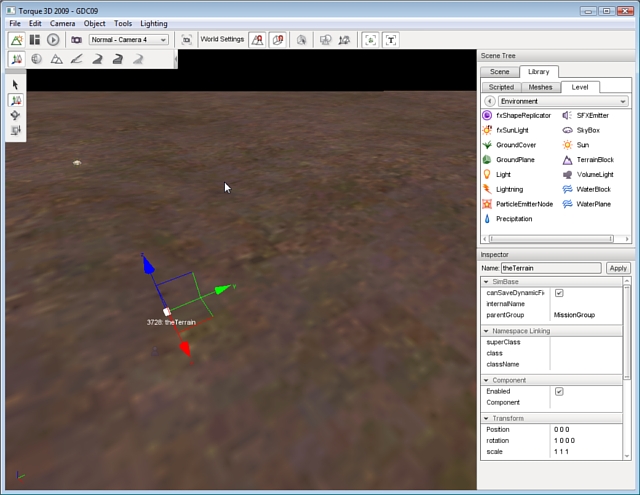 The most recommended and effective method to add a TerrainBlock to a level is to import the terrain from external data files. However, this method requires the skill and the third-party tools to create those data files. Very high-quality and professional-looking terrain can be created with tools such as L3DT and GeoControl. These tools allow you to generate extremely detailed heightmaps that can be imported by Torque 3D and to generate terrain data.