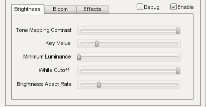 Control several High Dynamic Range (HDR) effects including Bloom and Tone mapping.