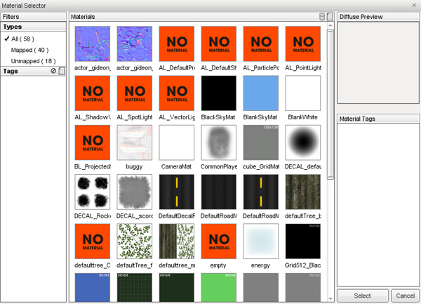 Clicking one of these icons you will open up the Material Selection window.