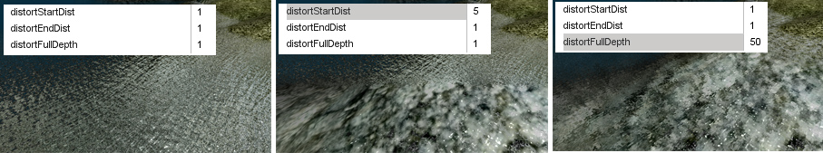 This section contains properties that control how the water distorts the under water terrain when viewed from above.