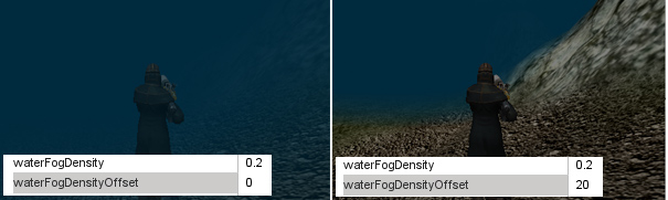 Water Fog Density Offset: The offset distance before the fogging