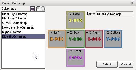 downloaded the Blue_Sky files, and unzipped them into your Torque3D/My Projects/ game/art/skies/game/art/skies directory, where is the name of the project you opened or created for this tutorial. Click on the X-POS (Left) icon on the cubemap display. A browser window will open: