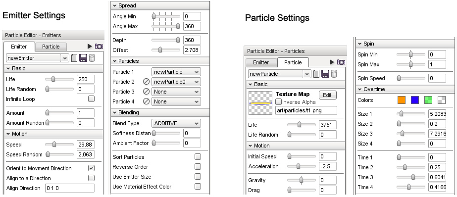 Emitter and Particle Example Settings