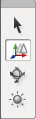 The Shape Editor adds several buttons to the standard World Editor toolbar to control the 3D shape view, and uses the familiar select/move/rotate palette for node transform manipulation.