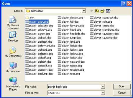 An important feature of the Shape Editor is the ability to add new sequences to a shape from external animation files (DSQ or DAE). This allows animations to be shared by shapes that have a common skeleton (such as character models).
