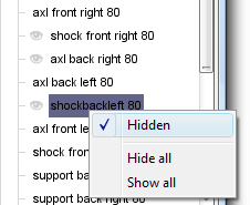 If the Levels checkbox is checked on the Details tab in the Advanced Properties window, then selecting a mesh or detail level in the tree will switch to that detail level in the 3D view. The bounding box for the selected object can be displayed using the
